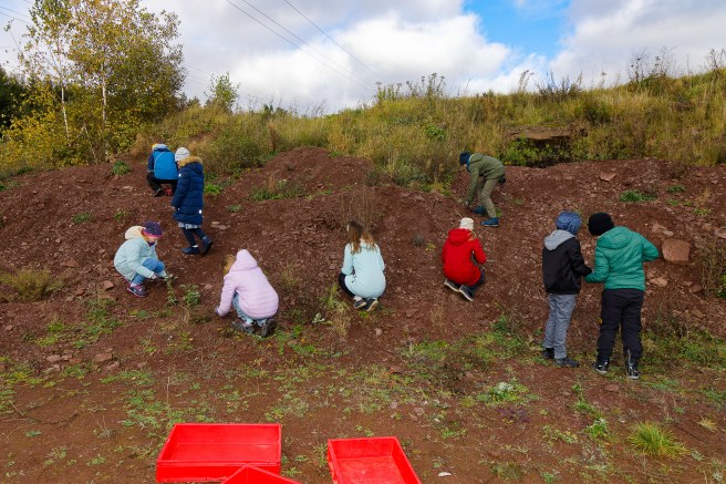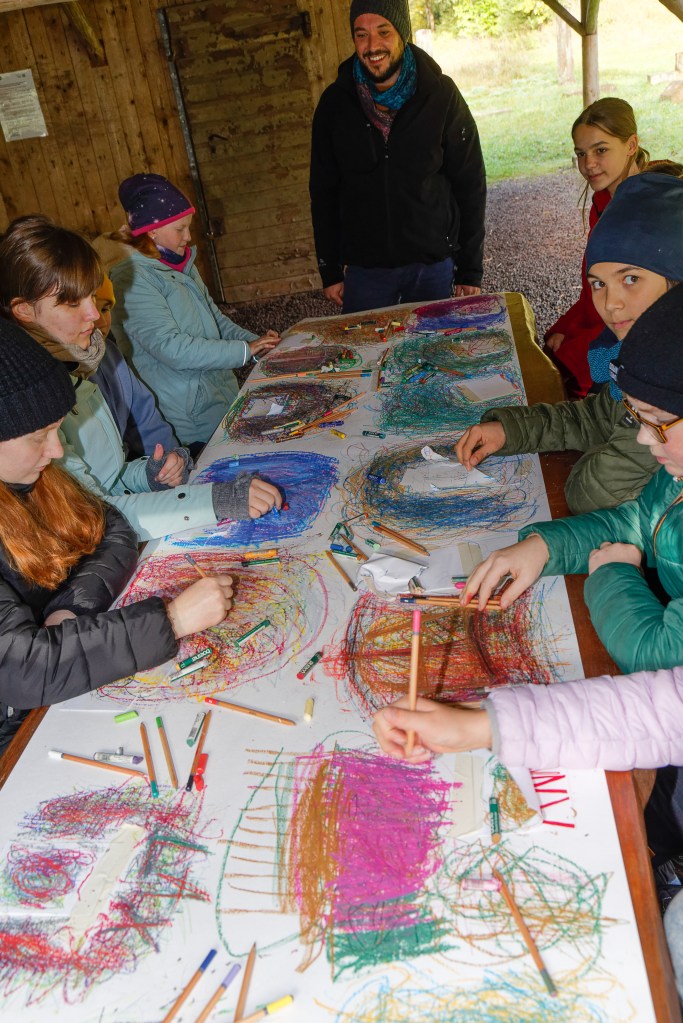 Bis hier Filme, Geschichten, Konzeptansätze zu lesen sind, bis das entstandene Buch betrachtet werden kann, bis alle Texte geschrieben, korrigiert, lektoriert, bis Erkenntnisse ausgewertet und verschriftlich werden, läuft der Workshop … schreiben die Kinder, lernen alle beim Tun – Learning by Doing . Wir graben, schreiben, forschen, finden, präparieren, betrachen die Sammlung. Schreiben, malen, erfahren, arbeiten in Gruppen und mit uns selbst… bei Regen, Wind und Sonne.