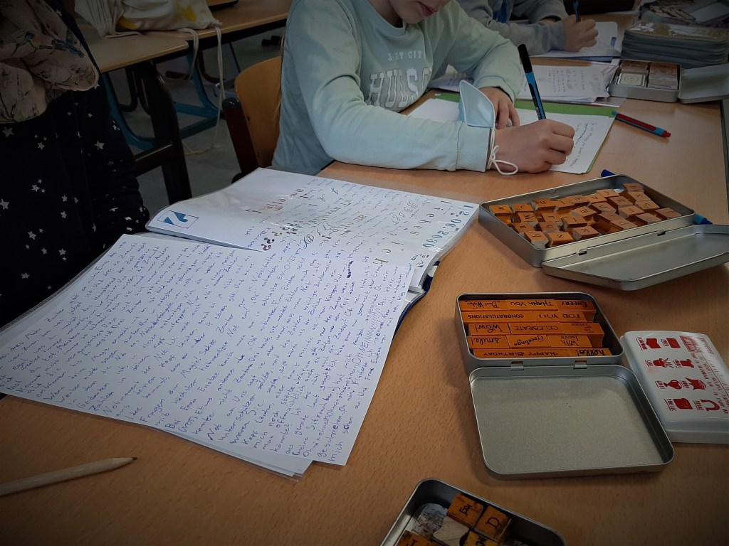 Ich lese eine von meinen Geschichten vor. Wenn beim Zuhören plötzlich eine eigene Idee hervorblitzt, schreibt derjenige los. Seine eigenen Geschichte. Wer dabei dann Ruhe braucht, setzt die Kopfhörer auf.